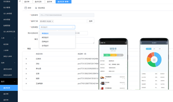 支持商家小助手(微信小程序)、pc后台进行盘点